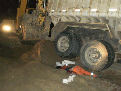 Funcionários da empresa onde a vítima trabalhava tiveram de utilizar uma retro escavadeira para remover o corpo. O motorista "Jailson Augusto de Medeiros", 31 anos, morava na Rua Expedito R. Da Costa, no bairro Quixabeirinha, em mossoró. Morreu na tarde de Sexta feira 10 de dezembro, esmagado por uma caçamba carregada com mais de 15 toneladas de areia..